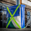 Deze ruige rugzak is gemaakt voor dagelijkse hikes naar de supermercato, zwemfeestjes en winter picnics in het Vondelpark. Gemaakt van gerecycled vrachtwagen zeil, is dit een tas met een verhaal. Een wereldreiziger. Elke tas is gemaakt in Nederland, en heeft een unieke kleuren combinatie. Geen enkele tas is hetzelfde. De reflecterende strips aan de voorkant maken de tas een bright star in het verkeer. It's hip to be square!